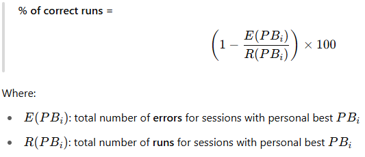 | PB (sec) | Errors | Runs | % Correct Runs |